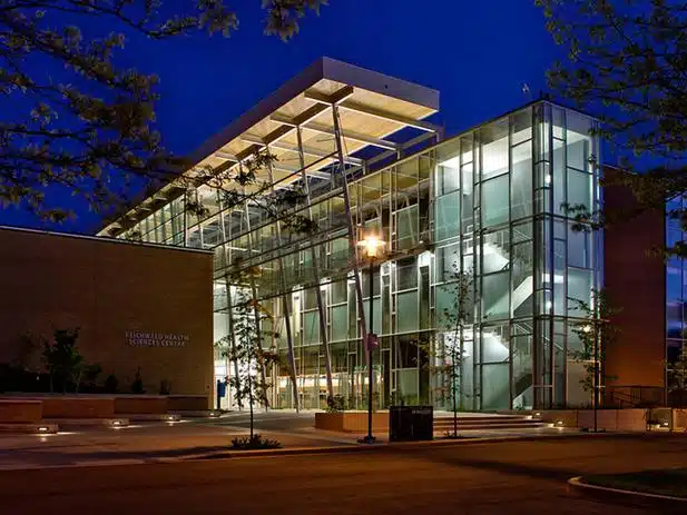 MCW designed the building’s mechanical and plumbing systems, including designs and specifications for exhaust requirements of lab areas and washrooms. The building connects to the campus-wide geo-exchange system. As a result, MCW`s mechanical designs included heat exchangers and all associated piping inside the building, plus the piping extending nearly ten feet/three metres beyond the exterior foundation wall. MCW also calculated heat loads for the building and made recommendations for heating and cooling loads.